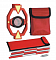 Состав комплекта: минипризма диаметром 25,4 мм (постоянная призмы - 17,5 мм) в полимерном ударопрочный держателе; минивешка из 4-х скручиваемых между собой стержней по 30 см и наконечника длиной 5 см. Минипризма съёмная и вкручивается в держатель. Держатель имеет сверху и снизу крепежные отверстия (диаметр резьбы 1/4") для крепления к стержням минивешки. Для точной центровки над точкой стояния держатель оснащён круглый уровень. Расстояние от нижнего (верхнего) края держателя до центра призмы - 5см.
